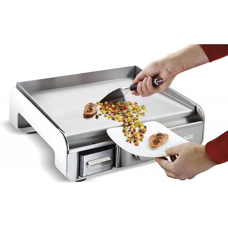 Ergonomique avec sa poignée “soft touch”, la spatule permet de retourner les aliments facilement et s’avère également utile pour nettoyer efficacement les plaques de caisson. Compatible avec le lave-vaisselle.